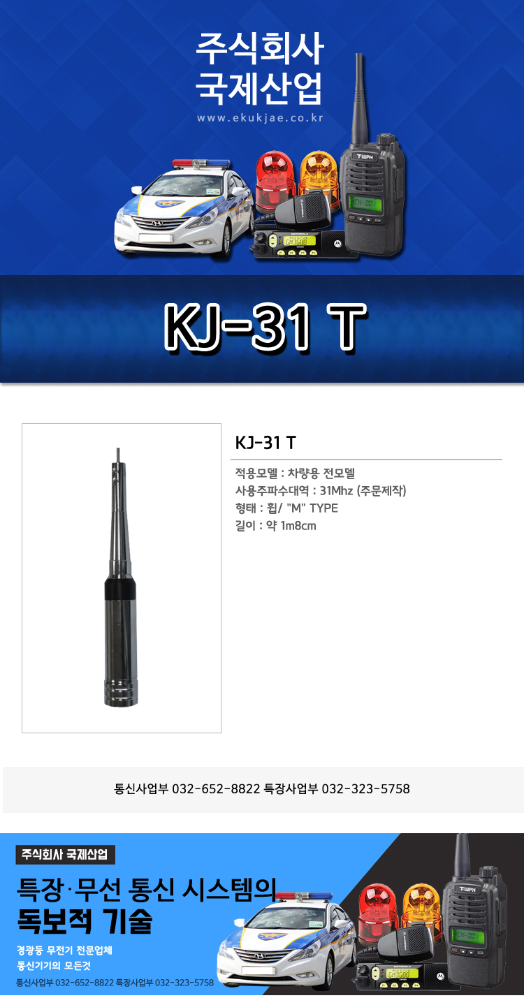 KJ-31 T 차량 안테나 서울,구리,남양주,하남,고양,의정부,양주,포천,동두천,김포,광명,인천,시흥,안산,의왕,성남,광주,수원,화성,용인,오산,평택,양평,이천,여주,원주,횡성,홍천,가평,춘천,화천,양구,인제,강원도,경기도,강릉,양양,평창,정선,영월,제천,고성,속초,강릉,동해,삼척,태백,단양,봉화,울진,영양,영주,예천,천안,진천,음성,충주,괴산,청주,아산,당진,태안,서산,보령,공주,세종,대전,계롱,논산,금삭,영동,서천,상주,문경,구미,김천,의성,안동,영광,고창,나주,목포,해남,여수,순천,통영,진주,창원,김해,부산,울산,경주,포항,대구,달성,LED,경광등,싸인보드,앰프스피커,특장,고소작업대,써치라이트,무전기,무선중계기,비상등,국제산업,주식회사국제산업,전광판,싸이렌앰프,안테나,멀티충전기,무전기충전기,무전기악세사리,무전기마이크,미니경광등,특수경광등,경찰경광등,경찰싸인보드,소방,국방,병원,경호,산악,등산,행사,쏠라경광등,태양열경광등.도로경광등.작업등,탐조등,유리부착경광등.리프트경광등,모토로라무전기