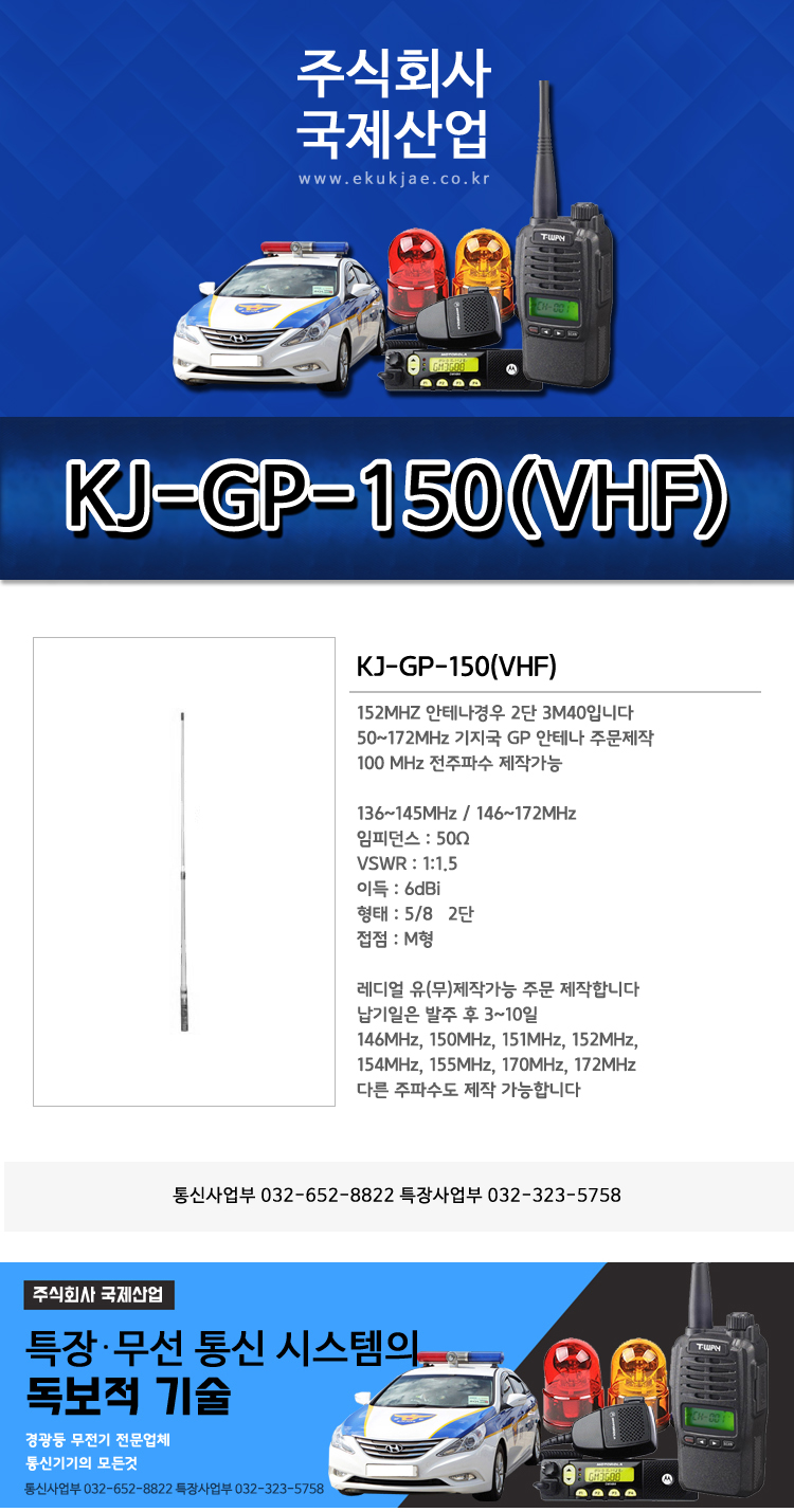 KJ-GP-150 기지국 GP 안테나 서울,구리,남양주,하남,고양,의정부,양주,포천,동두천,김포,광명,인천,시흥,안산,의왕,성남,광주,수원,화성,용인,오산,평택,양평,이천,여주,원주,횡성,홍천,가평,춘천,화천,양구,인제,강원도,경기도,강릉,양양,평창,정선,영월,제천,고성,속초,강릉,동해,삼척,태백,단양,봉화,울진,영양,영주,예천,천안,진천,음성,충주,괴산,청주,아산,당진,태안,서산,보령,공주,세종,대전,계롱,논산,금삭,영동,서천,상주,문경,구미,김천,의성,안동,영광,고창,나주,목포,해남,여수,순천,통영,진주,창원,김해,부산,울산,경주,포항,대구,달성,LED,경광등,싸인보드,앰프스피커,특장,고소작업대,써치라이트,무전기,무선중계기,비상등,국제산업,주식회사국제산업,전광판,싸이렌앰프,안테나,멀티충전기,무전기충전기,무전기악세사리,무전기마이크,미니경광등,특수경광등,경찰경광등,경찰싸인보드,소방,국방,병원,경호,산악,등산,행사,쏠라경광등,태양열경광등.도로경광등.작업등,탐조등,유리부착경광등.리프트경광등,모토로라무전기