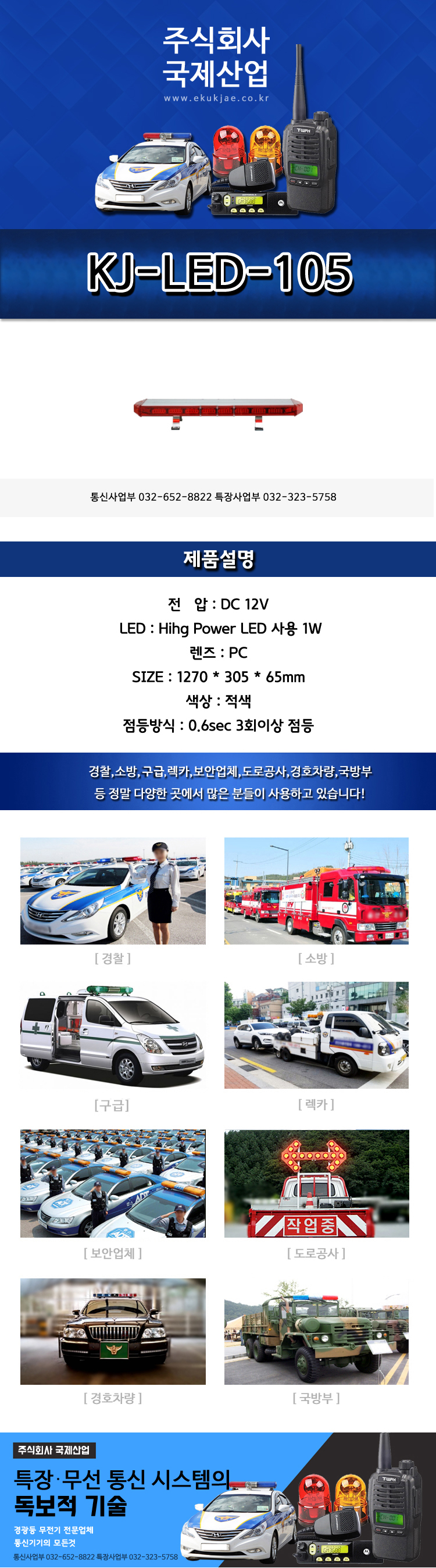 KJ-LED-105 전자식 특수형 서울,구리,남양주,하남,고양,의정부,양주,포천,동두천,김포,광명,인천,시흥,안산,의왕,성남,광주,수원,화성,용인,오산,평택,양평,이천,여주,원주,횡성,홍천,가평,춘천,화천,양구,인제,강원도,경기도,강릉,양양,평창,정선,영월,제천,고성,속초,강릉,동해,삼척,태백,단양,봉화,울진,영양,영주,예천,천안,진천,음성,충주,괴산,청주,아산,당진,태안,서산,보령,공주,세종,대전,계롱,논산,금삭,영동,서천,상주,문경,구미,김천,의성,안동,영광,고창,나주,목포,해남,여수,순천,통영,진주,창원,김해,부산,울산,경주,포항,대구,달성,LED,경광등,싸인보드,앰프스피커,특장,고소작업대,써치라이트,무전기,무선중계기,비상등,국제산업,주식회사국제산업,전광판,싸이렌앰프,안테나,멀티충전기,무전기충전기,무전기악세사리,무전기마이크,미니경광등,특수경광등,경찰경광등,경찰싸인보드,소방,국방,병원,경호,산악,등산,행사,쏠라경광등,태양열경광등.도로경광등.작업등,탐조등,유리부착경광등.리프트경광등,모토로라무전기