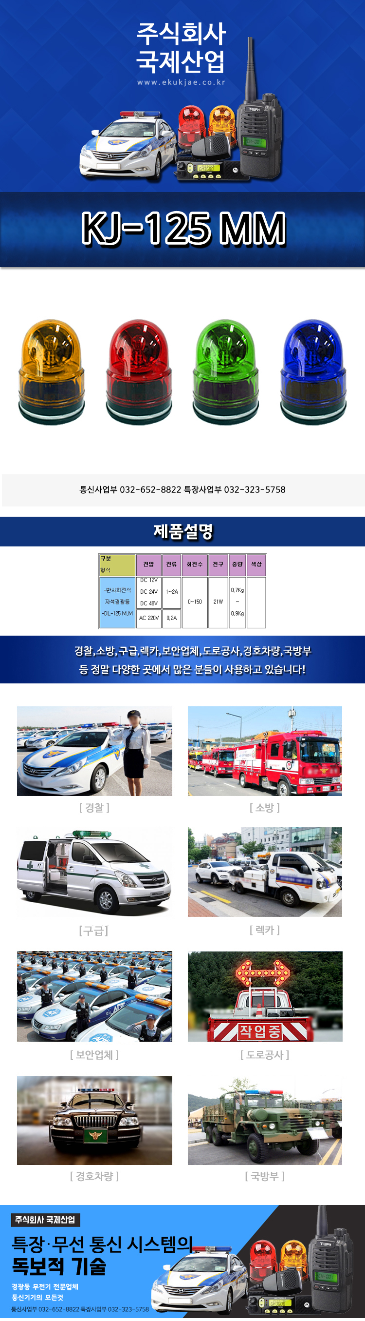 KJ-125 MM 회전식 서울,구리,남양주,하남,고양,의정부,양주,포천,동두천,김포,광명,인천,시흥,안산,의왕,성남,광주,수원,화성,용인,오산,평택,양평,이천,여주,원주,횡성,홍천,가평,춘천,화천,양구,인제,강원도,경기도,강릉,양양,평창,정선,영월,제천,고성,속초,강릉,동해,삼척,태백,단양,봉화,울진,영양,영주,예천,천안,진천,음성,충주,괴산,청주,아산,당진,태안,서산,보령,공주,세종,대전,계롱,논산,금삭,영동,서천,상주,문경,구미,김천,의성,안동,영광,고창,나주,목포,해남,여수,순천,통영,진주,창원,김해,부산,울산,경주,포항,대구,달성,LED,경광등,싸인보드,앰프스피커,특장,고소작업대,써치라이트,무전기,무선중계기,비상등,국제산업,주식회사국제산업,전광판,싸이렌앰프,안테나,멀티충전기,무전기충전기,무전기악세사리,무전기마이크,미니경광등,특수경광등,경찰경광등,경찰싸인보드,소방,국방,병원,경호,산악,등산,행사,쏠라경광등,태양열경광등.도로경광등.작업등,탐조등,유리부착경광등.리프트경광등,모토로라무전기