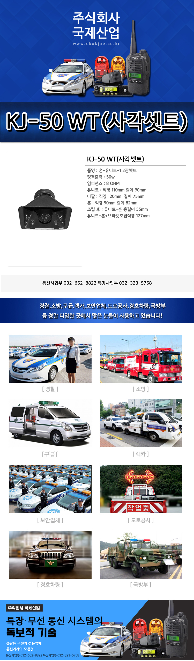 KJ-50 WT (사각셋트) 서울,구리,남양주,하남,고양,의정부,양주,포천,동두천,김포,광명,인천,시흥,안산,의왕,성남,광주,수원,화성,용인,오산,평택,양평,이천,여주,원주,횡성,홍천,가평,춘천,화천,양구,인제,강원도,경기도,강릉,양양,평창,정선,영월,제천,고성,속초,강릉,동해,삼척,태백,단양,봉화,울진,영양,영주,예천,천안,진천,음성,충주,괴산,청주,아산,당진,태안,서산,보령,공주,세종,대전,계롱,논산,금삭,영동,서천,상주,문경,구미,김천,의성,안동,영광,고창,나주,목포,해남,여수,순천,통영,진주,창원,김해,부산,울산,경주,포항,대구,달성,LED,경광등,싸인보드,앰프스피커,특장,고소작업대,써치라이트,무전기,무선중계기,비상등,국제산업,주식회사국제산업,전광판,싸이렌앰프,안테나,멀티충전기,무전기충전기,무전기악세사리,무전기마이크,미니경광등,특수경광등,경찰경광등,경찰싸인보드,소방,국방,병원,경호,산악,등산,행사,쏠라경광등,태양열경광등.도로경광등.작업등,탐조등,유리부착경광등.리프트경광등,모토로라무전기