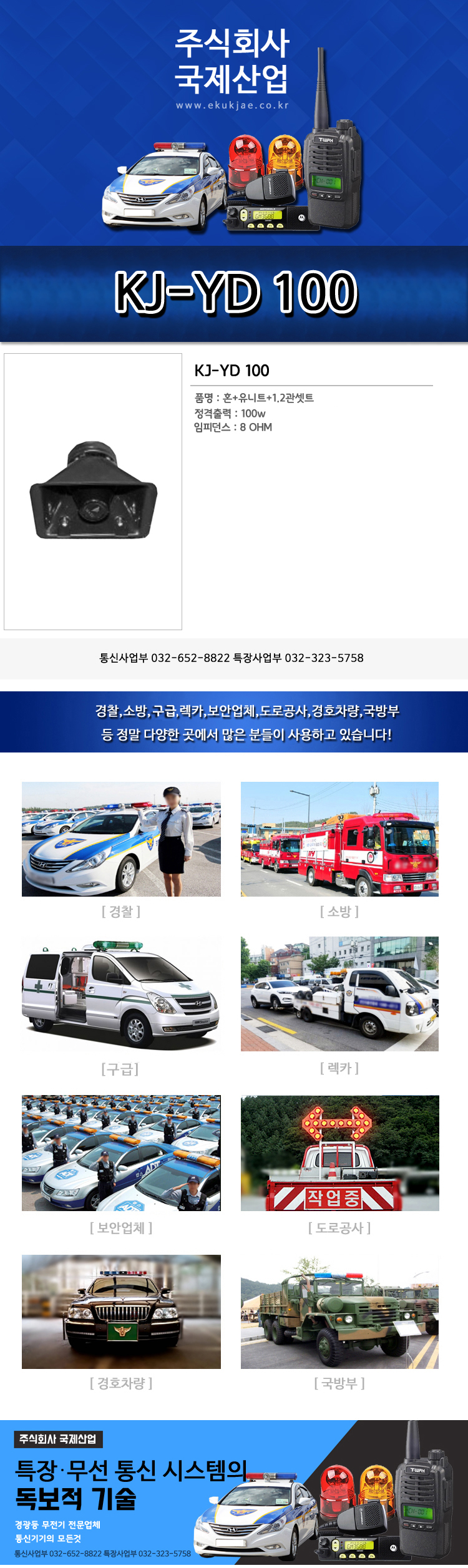 KJ-YD 100 서울,구리,남양주,하남,고양,의정부,양주,포천,동두천,김포,광명,인천,시흥,안산,의왕,성남,광주,수원,화성,용인,오산,평택,양평,이천,여주,원주,횡성,홍천,가평,춘천,화천,양구,인제,강원도,경기도,강릉,양양,평창,정선,영월,제천,고성,속초,강릉,동해,삼척,태백,단양,봉화,울진,영양,영주,예천,천안,진천,음성,충주,괴산,청주,아산,당진,태안,서산,보령,공주,세종,대전,계롱,논산,금삭,영동,서천,상주,문경,구미,김천,의성,안동,영광,고창,나주,목포,해남,여수,순천,통영,진주,창원,김해,부산,울산,경주,포항,대구,달성,LED,경광등,싸인보드,앰프스피커,특장,고소작업대,써치라이트,무전기,무선중계기,비상등,국제산업,주식회사국제산업,전광판,싸이렌앰프,안테나,멀티충전기,무전기충전기,무전기악세사리,무전기마이크,미니경광등,특수경광등,경찰경광등,경찰싸인보드,소방,국방,병원,경호,산악,등산,행사,쏠라경광등,태양열경광등.도로경광등.작업등,탐조등,유리부착경광등.리프트경광등,모토로라무전기